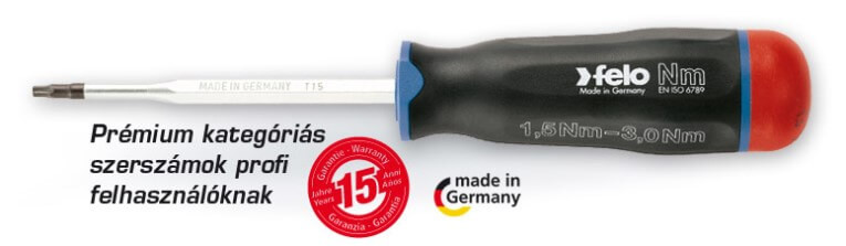 A Felo minőségi és precíziós munkára alkalmas nyomaték-csavarhúzó markolatai kis nyomatéktartományban finoman szabályozható markolattípusok. A zöld jelzésű 0,6-1,5Nm nyomatéktartományban állítható nyomatékhatárolós markolat olyan előnyös tulajdonságokkal rendelkezik, melyek gyorsítják használatát, precíz megbízható beállítást és ennek megfelelően előírás szerinti munkavégzést biztosítanak. Ezek tulajdonságok az alábbiak: