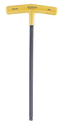 5/16" col méretű T-markolatos imbusz szerszámok gömbfejű inches változata. Hosszú gömbvégű (növekvő hosszúságú széria) kivitelével kényelmes és erős megoldás a colos T-kulcsok között. Hosszított szárának köszönhetően a mélyen fekvő csavarok elérése is könnyebb és a gömbvégnek köszönhetően a szerszámmal 25°-os szögben megdöntve is dolgozhatunk. A méretpontos kialakítás és az éles sarkok biztosítják, hogy a Bondhus hatszögkulcsok nem fordulnak el a csavarfejben és nem roncsolják a csavarokat. A ProGuard felületkezelés 5x hatékonyabban védi meg a szerszámot a korróziótól szemben más hagyományos felületkezelésnél. A Protanium acélból készült Bondhus imbuszkulcsok legalább 20%-kal nagyobb csavarónyomaték átvitelre képesek a konkurenciánál. A Bondhus T-markolatos szerszámok szimetrikus kialakítása gyorsabb szerszámhasználatot tesz lehetővé és a markolat tömege és mérete a szerszámhoz igazított. A szerszám vége hegesztett így az soha nem fordulhat el a markolatban. A színkódolt (sárga=inch) mártott markolat kényelmes, csúszásbiztos és könnyen azonosítható. Ezek ismeretében kijelenthetnénk, hogy a Bondhus a legerősebb T-imbuszkulcs jelenleg a világon.