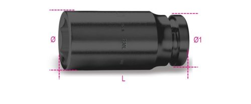 730L 60 Hatszögű gépi dugókulcs, 1,1/2"-os négyszögletes csatlakozó, hosszú, foszfátozott - Beta - 007300360