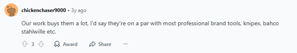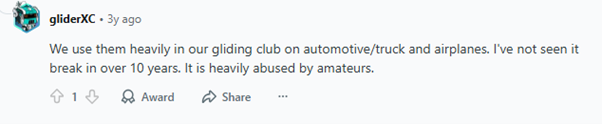 „A vitorlázóklubunkban rengeteget használjuk őket autók, teherautók és repülők karbantartásához. Tíz év alatt egyszer sem láttam, hogy eltörtek volna, pedig az eszközöket a tagok gyakran elég durván igénybe veszik.”