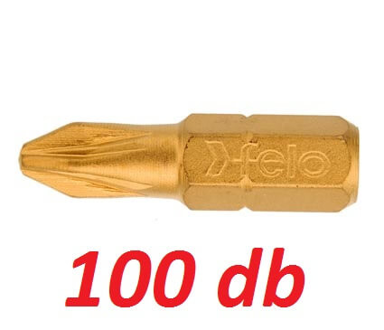 PZ1 méretű 25 mm hosszú 100 db PZ bithegy Tin (titán-nitrid) bevonattal / Pozidriv bit kézi és gépi behajtóba C 6,3 1/4'' col/inch befogású - Felo - 02101077